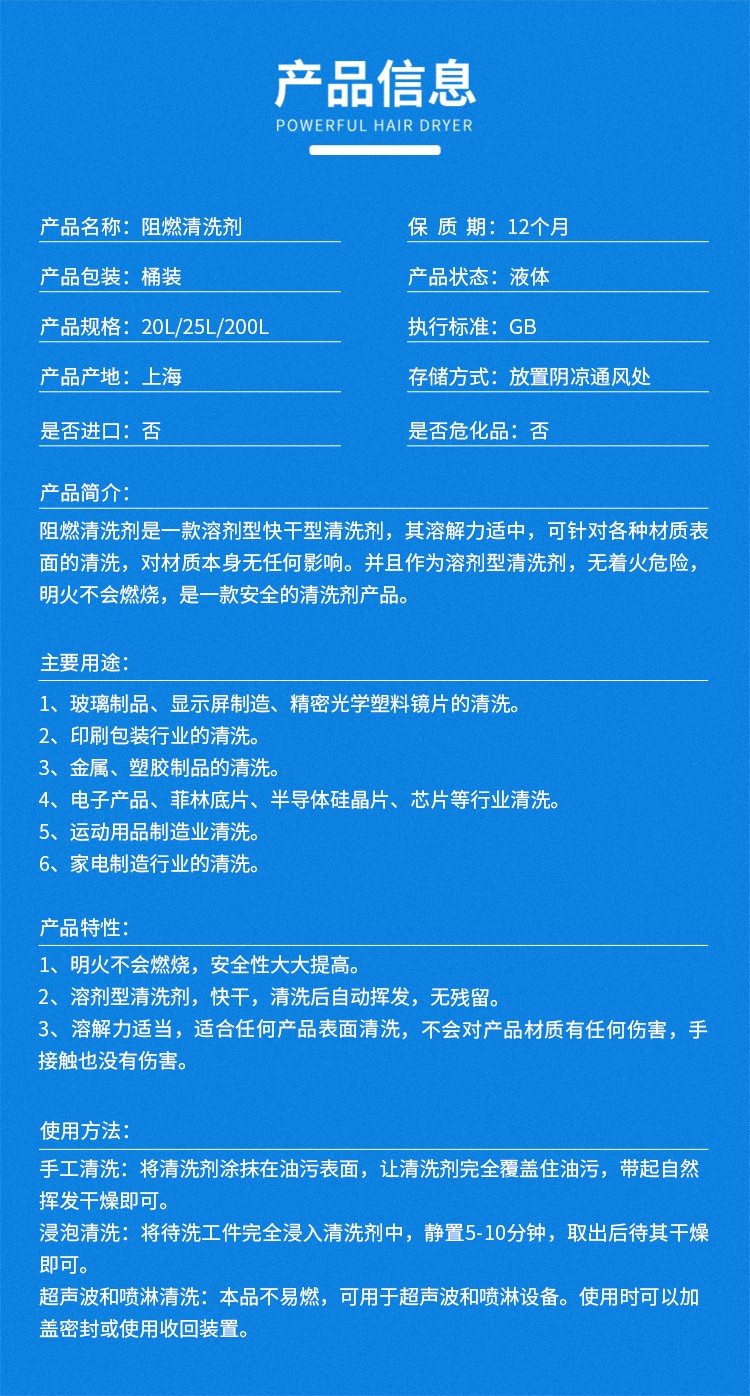 阻燃清洗剂 现货供应桶装阻燃清洗剂 不燃烧